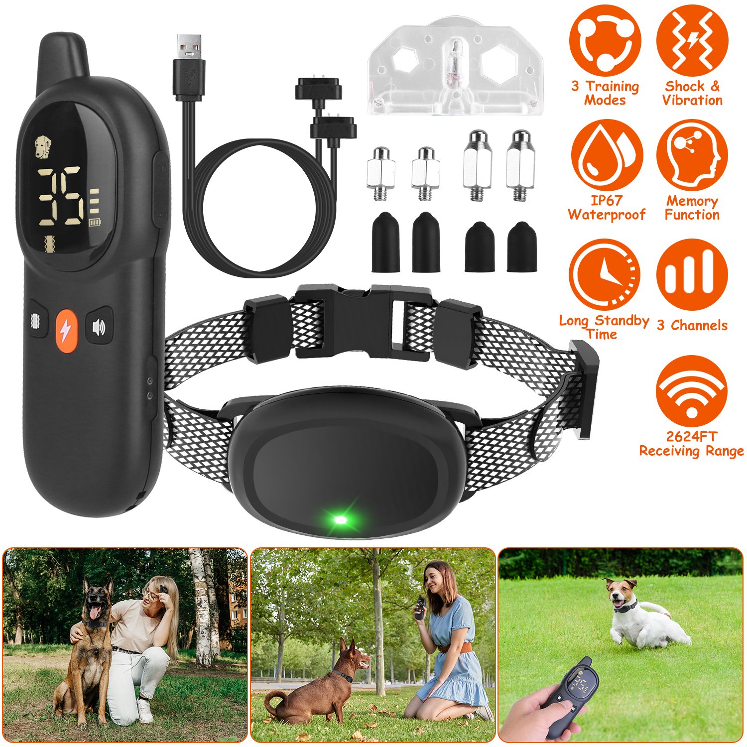 Dog Training Collar with Remote 2624FT 3 Modes Beep Shock Vibration Electric Rechargeable Correction Device IP67 Waterproof Transmitter Receiver for d Dog Training Collar with Remote 2624FT 3 Modes Beep Shock Vibration Electric Rechargeable Correction Device IP67 Waterproof Transmitter Receiver for d Dog Training Collar with Remote 2624FT 3 Modes Beep Shock Vibration Electric Rechargeable Correction Device IP67 Waterproof Transmitter Receiver for d Dog Training Collar with Remote 2624FT 3 Modes Beep Shock Vibration Electric Rechargeable Correction Device IP67 Waterproof Transmitter Receiver for d Dog Training Collar with Remote 2624FT 3 Modes Beep Shock Vibration Electric Rechargeable Correction Device IP67 Waterproof Transmitter Receiver for d