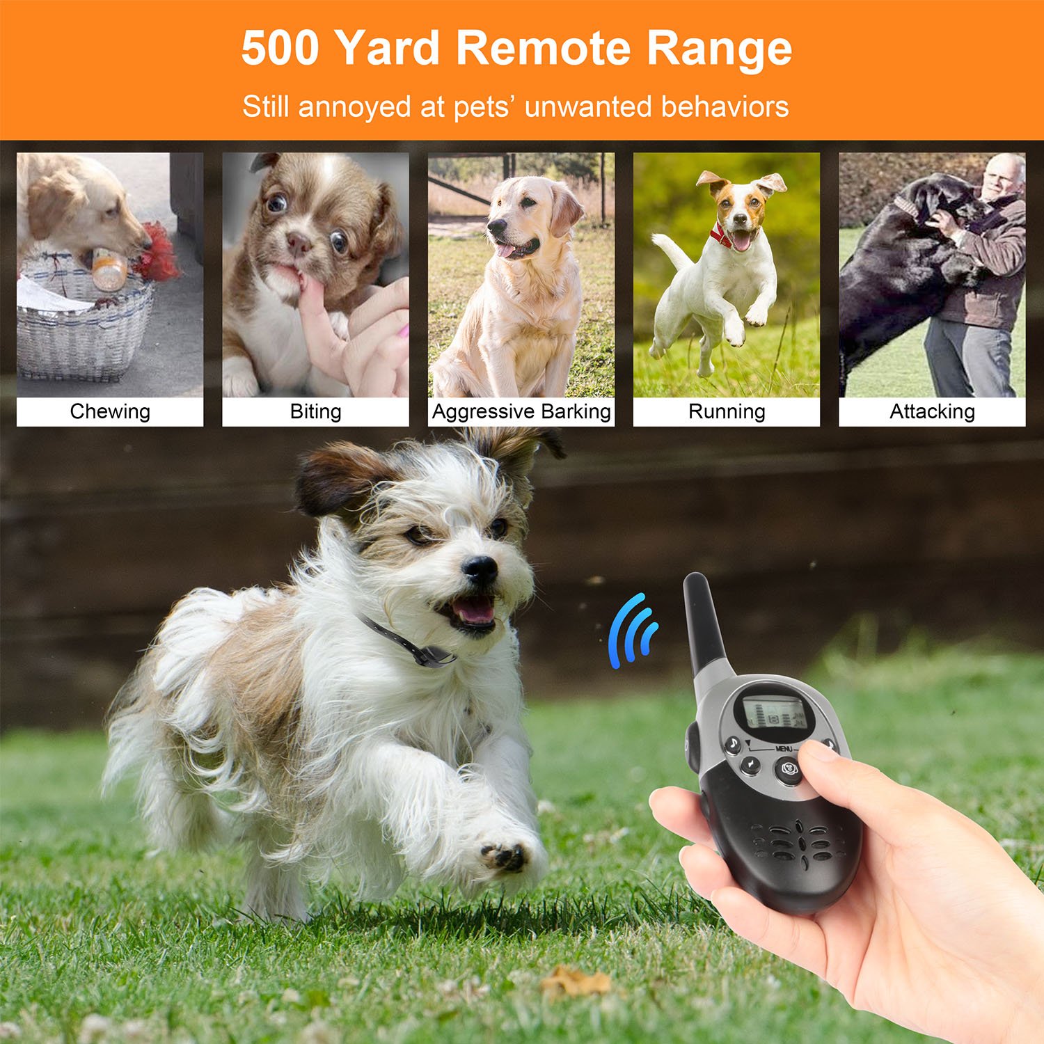 The dog training collar is a useful and effective tool to help correct misbehavior of your pet dog, which can give you a best-trained and well-behaved one. Comes with a 500 Yard /1500ft range remote and a high-sensitive receiver for pet to receive signal, which brings much convenience to train your pet. IP67 Water resistant and dust prevention performance lets your pet dog bath or swim safely with it.