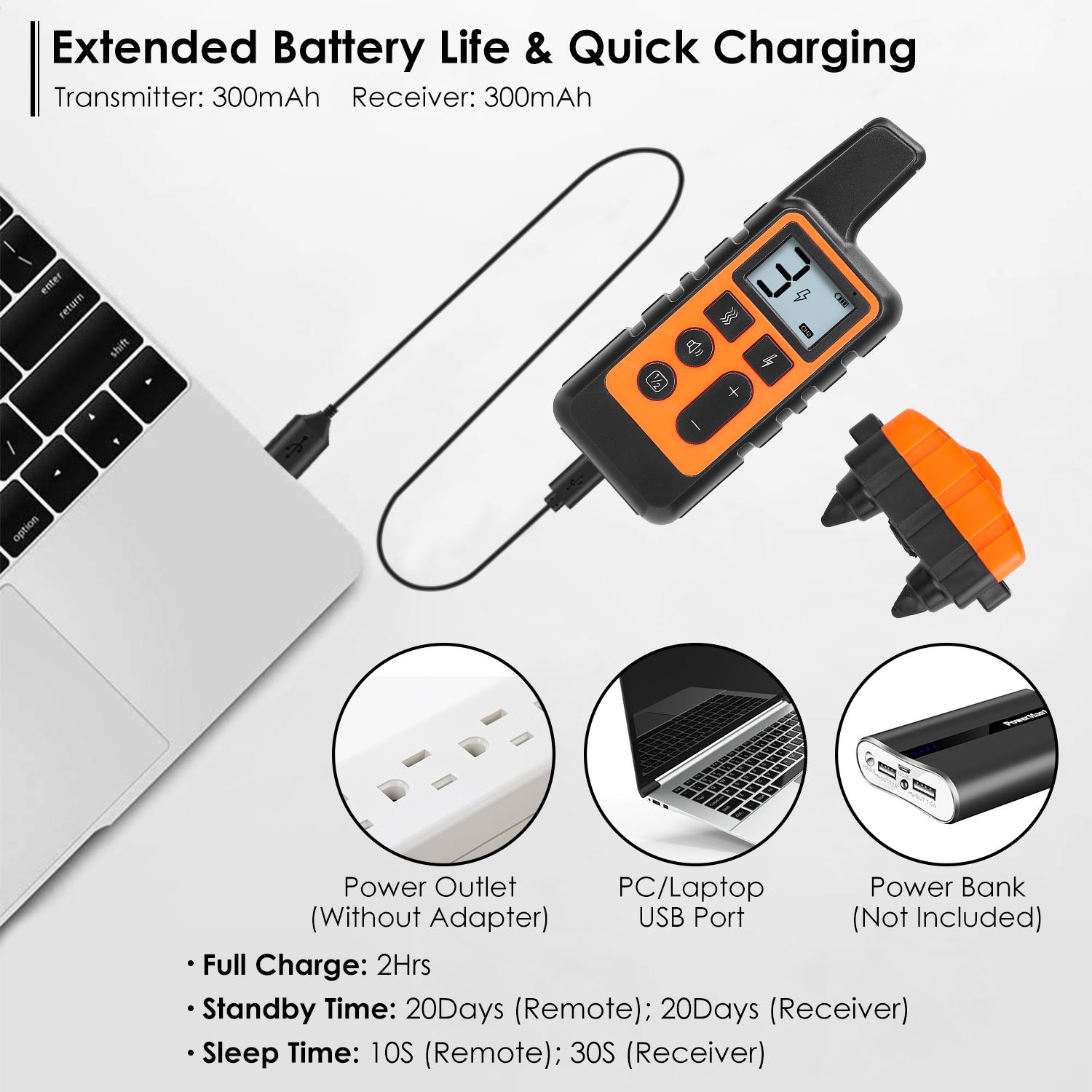 Our bark collar has 3 extremely efficient and safe training modes (beep, vibration and shock modes) for you to teach a dog basic obedience commands and correct your dog’s inappropriate behaviors. And 5 levels are available for you to adjust the accurate intensity of shock or vibration for your dog. Designed with IP67 waterproof, which can work well even if immersed in water, so your dog can wear it when bathing and swimming (Note: Do not immerse in water for more than one hour). Moreover, it has longest remote range (up to 1640ft), which helps you to freely train your dog at backyard, park, beach, etc. .