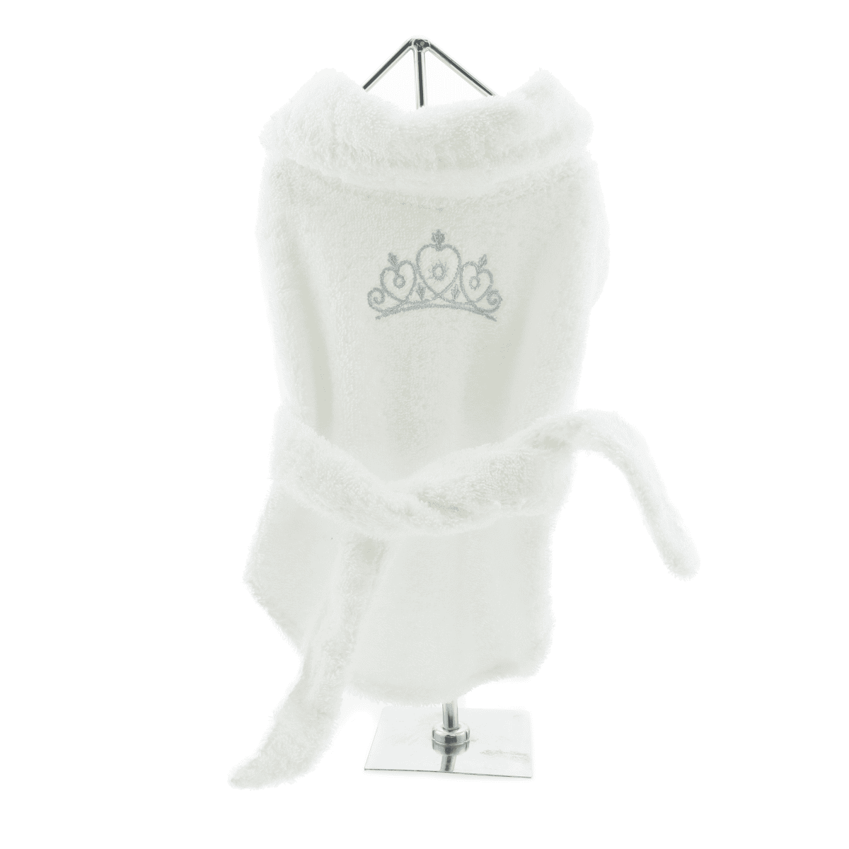 White Silver Tiara Cotton Dog Bathrobe by Doggie Design